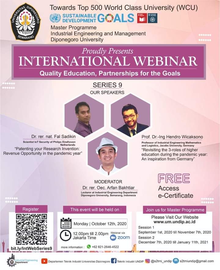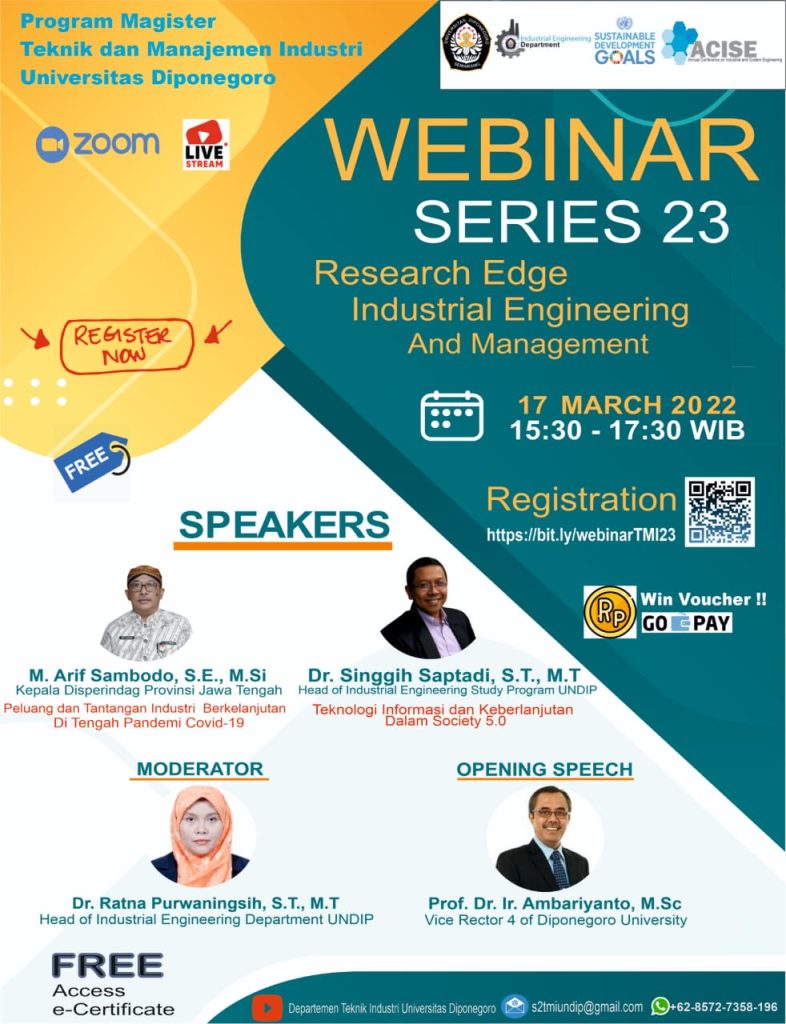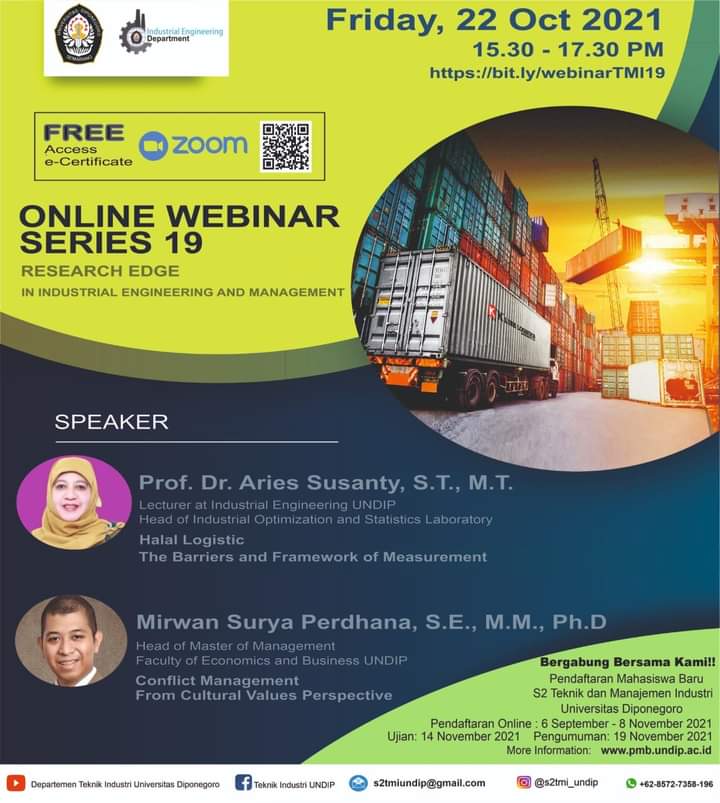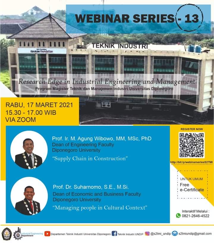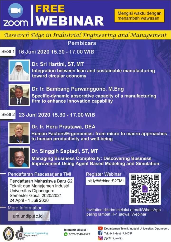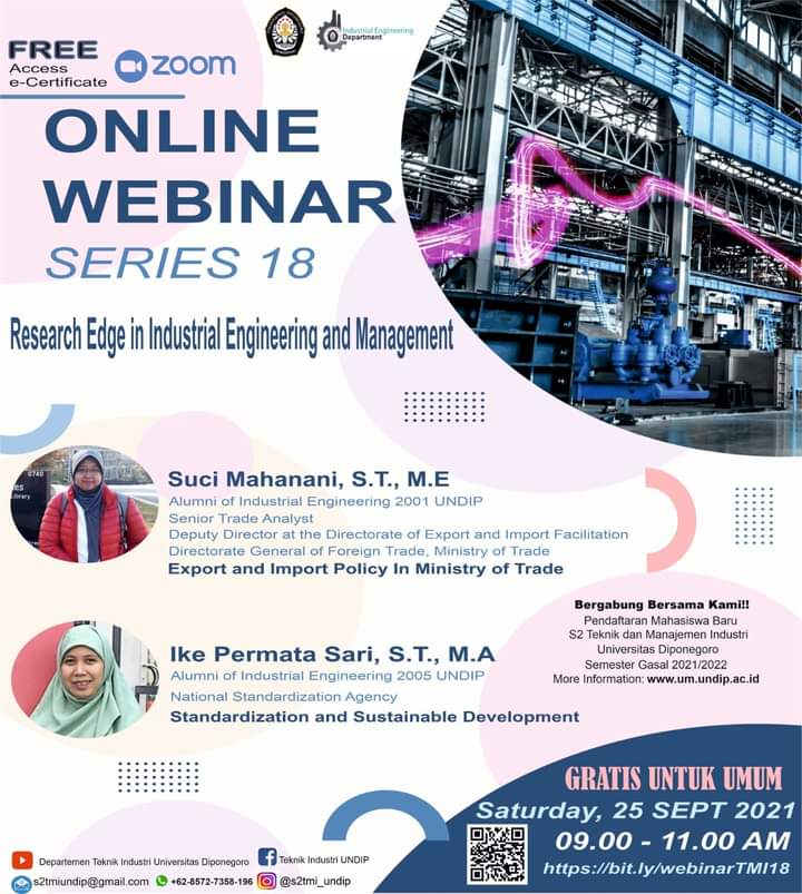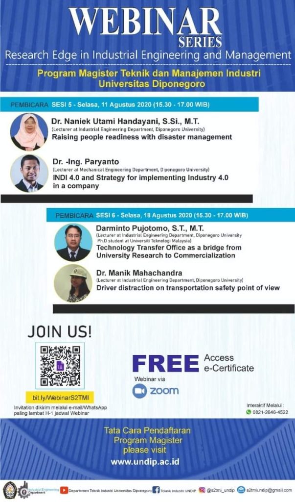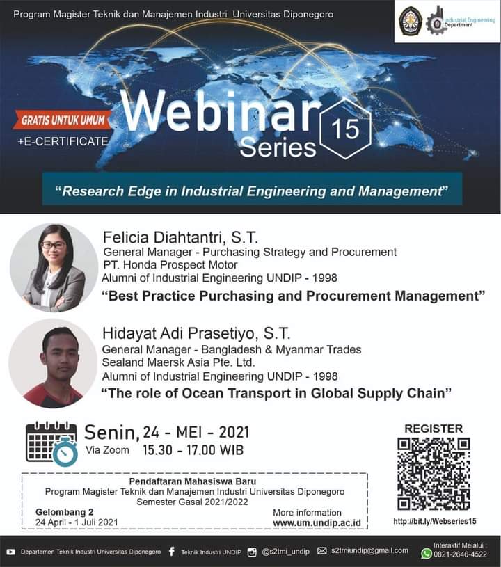 Selamat datang di portal Webinar Series Seminar Departemen Teknik Industri Universitas Diponegoro.